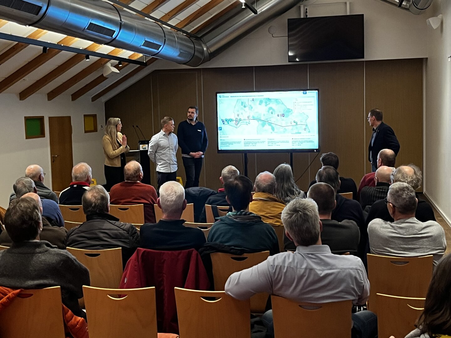 Vor Kurzem hatte die Stadt Geestland zu einer Informationsveranstaltung in den Langener Lindenhofsaal eingeladen. Dabei kamen mehrere Experten zu Wort: Nicolas Hübner von der Technischen Universität Berlin präsentierte die Ergebnisse der Klimarisikoanalyse für Geestland. Maurice Storp vom Landkreis Cuxhaven gab den rund 50 Zuhörenden einen spannenden Einblick in die Starkregengefahrenkarte. Und schließlich stellte Heiko Ullrich von der Stadt Geestland vor, wie sich die Verwaltung mit dem Thema Starkregen auseinandersetzt.