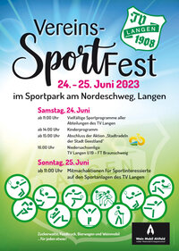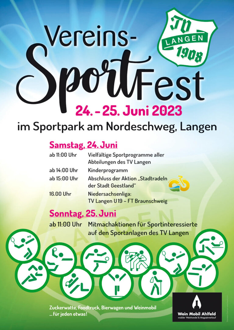 Vor und nach dem Drohnenfoto wurden alle herzlich zum Vereins-Sportfest des TV Langen im Sportpark am Nordeschweg mit vielen tollen Programmpunkten eingeladen.
