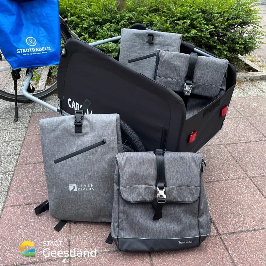 Wer sich an der Aktion beteiligte, hatte die Chance auf einen besonderen Preis: Wir haben unter allen Radlern, die an der Abschlussaktion teilnahmen, einen hochwertigen Fahrradanhänger sowie insgesamt vier Fahrradrucksäcke verlost. Diese wurden an dem Tag vor Ort um 15.30 Uhr (nach dem Drohnenfoto) übergeben.