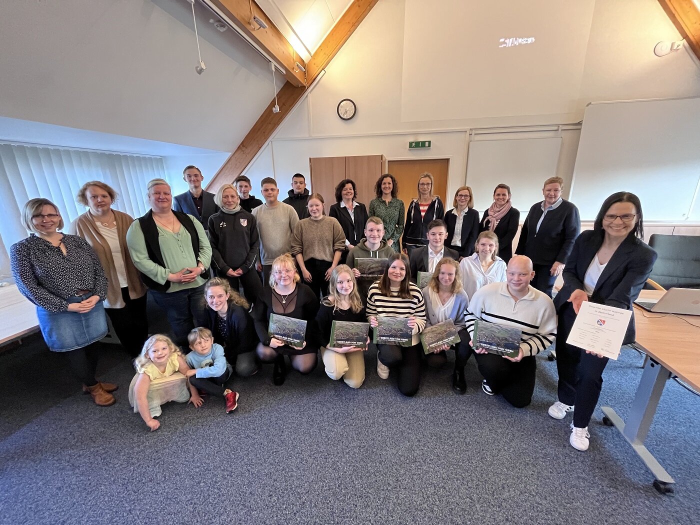 Die Aufregung war den Jugendlichen anzumerken. Immerhin hatten sie lange auf diesen Tag hin gefiebert, hatten den Sitzungssaal dekoriert und ihre Moderation eingeübt. Die offizielle Übergabe der Urkunden im Rathaus in Bad Bederkesa – traditionell vor Vertretern von Verwaltung und Politik – war der abschließende Höhepunkt eines Projekts, das seit mehreren Jahren als Synonym für gelebte Jugendbeteiligung in Geestland steht. „Uns liegt das Mikrobudget sehr am Herzen. Denn hier bekommen wir die Chance, die Zukunft unserer Stadt aktiv mitzugestalten und unsere Meinung einzubringen“, betonte Hannah Kreuzer, eine von insgesamt zwölf Jugendlichen, die sich in Geestland als Jugendvertreter engagieren.